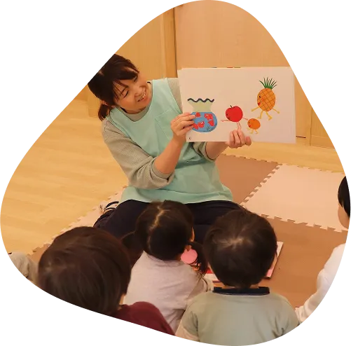 繭の糸では、子どもたちが自然に英語に親しめる環境を大切にしています。英語は単なる「勉強」ではなく、日常の中で楽しく学ぶもの。歌や遊び、絵本の読み聞かせを通じて、子どもたちは英語を身近に感じ、言葉への興味や表現力を育んでいきます。将来、グローバルに活躍する力を育てるために、私たちは子どもたち一人ひとりに寄り添いながら、楽しみながら学べる環境を提供しています。