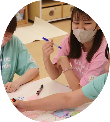 繭の糸キッズは、チームワークを高める研修や、お互いの価値観を知れるワークなど、様々な分野において意見交換できる研修が盛りだくさん!毎月リーダー達が集まり会議も開催しています!「もっと成長したい」「自信をつけたい」という想いをしっかりサポートします。