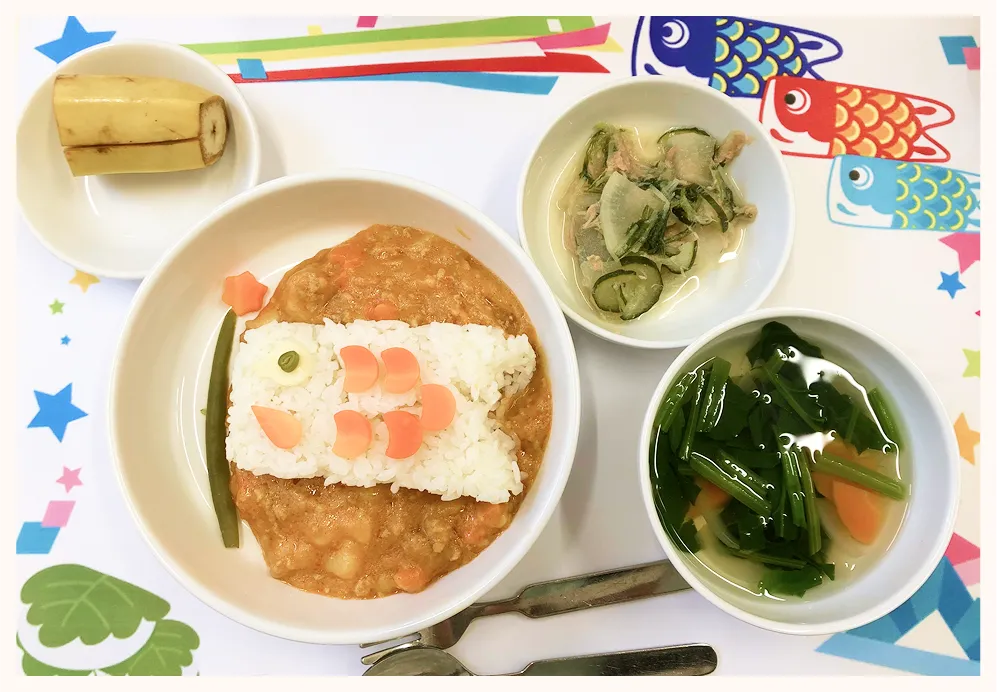 子どもたちの心と体を育む「食育」に力を入れています。 栄養バランスの取れた美味しい給食を提供し、「食べることの楽しさ」や「感謝の心」を育む環境を整えています。 先生たちも子どもたちと一緒に給食を食べるので、食の大切さを実感しながら健康的に働けます!